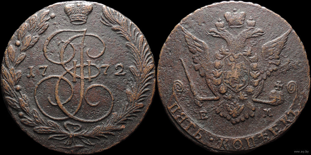 5 копеек 1772 ЕМ, Рельеф! С 1 Рубля! Смотрите другие лоты!