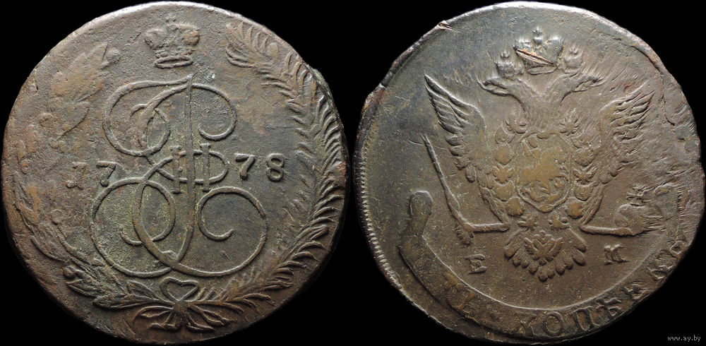 5 копеек 1778 ЕМ, Отличная! С 1 Рубля! Смотрите другие лоты!