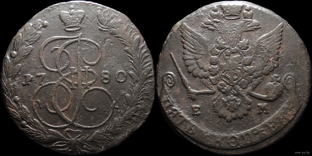 5 копеек 1780 ЕМ, Отличная! С 1 Рубля! Смотрите другие лоты!