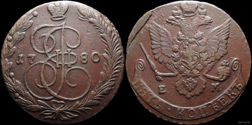 5 копеек 1780 ЕМ, Отличная! С 1 Рубля! Смотрите другие лоты!