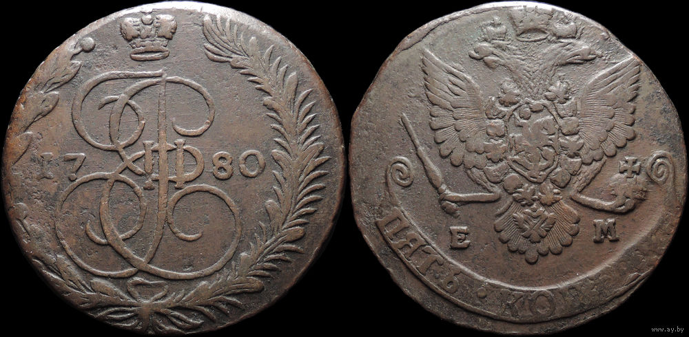 5 копеек 1780 ЕМ, Отличная! С 1 Рубля! Смотрите другие лоты!