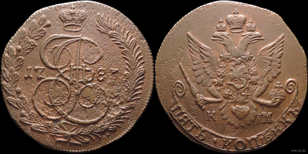 5 копеек 1783 КМ, Рельеф! С 1 Рубля! Смотрите другие лоты!
