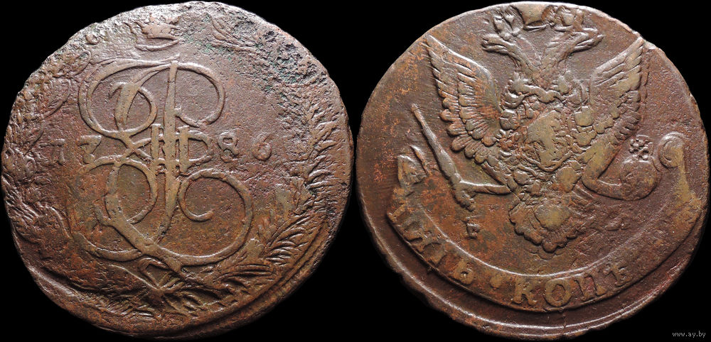 5 копеек 1786 ЕМ, Отличная! С 1 Рубля! Смотрите другие лоты!