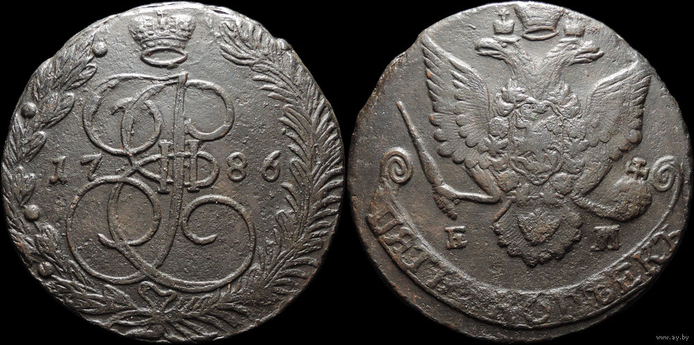 5 копеек 1786 ЕМ, Отличная! С 1 Рубля! Смотрите другие лоты!