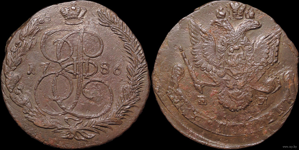 5 копеек 1786 ЕМ, Отличная! Тройной удар! С 1 Рубля! Смотрите другие лоты!