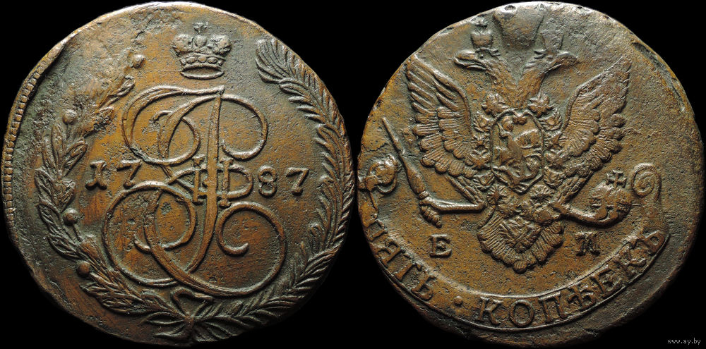 5 копеек 1787 ЕМ, Отличная! Нечастая! С 1 Рубля! Смотрите другие лоты!