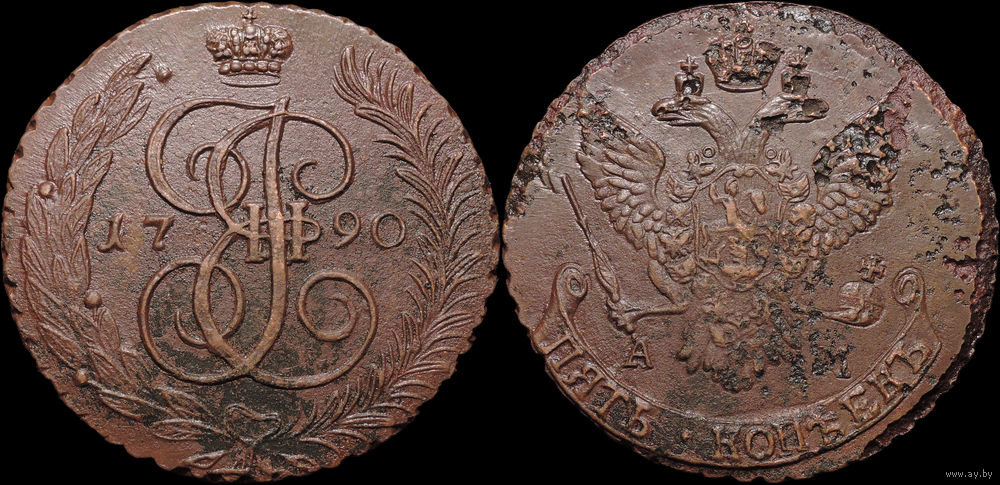5 копеек 1790 АМ, Отличная! С 1 Рубля! Смотрите другие лоты!