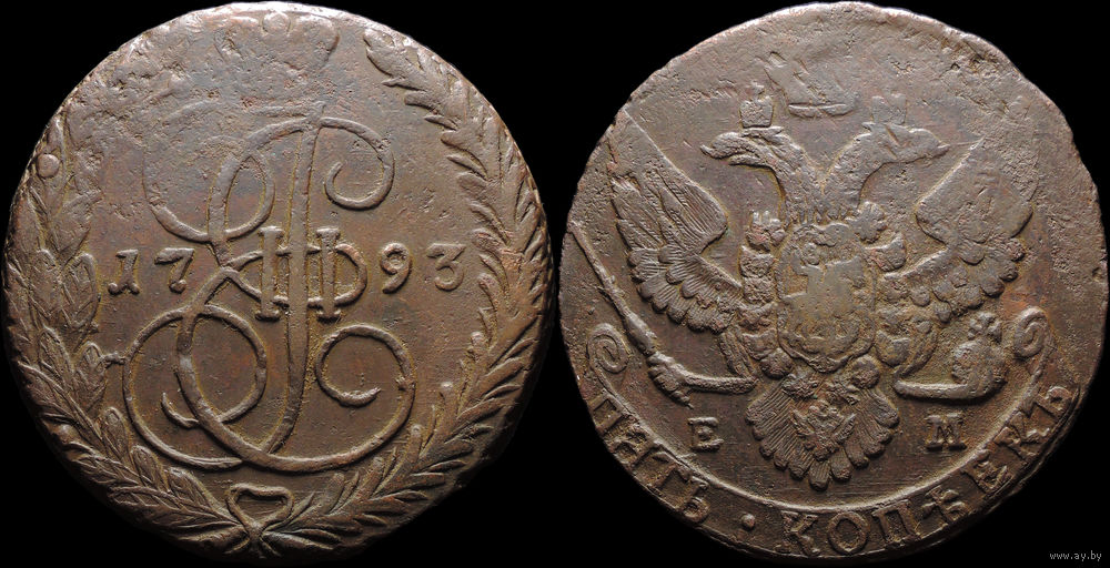 5 копеек 1793 ЕМ, Отличная! С 1 Рубля! Смотрите другие лоты!