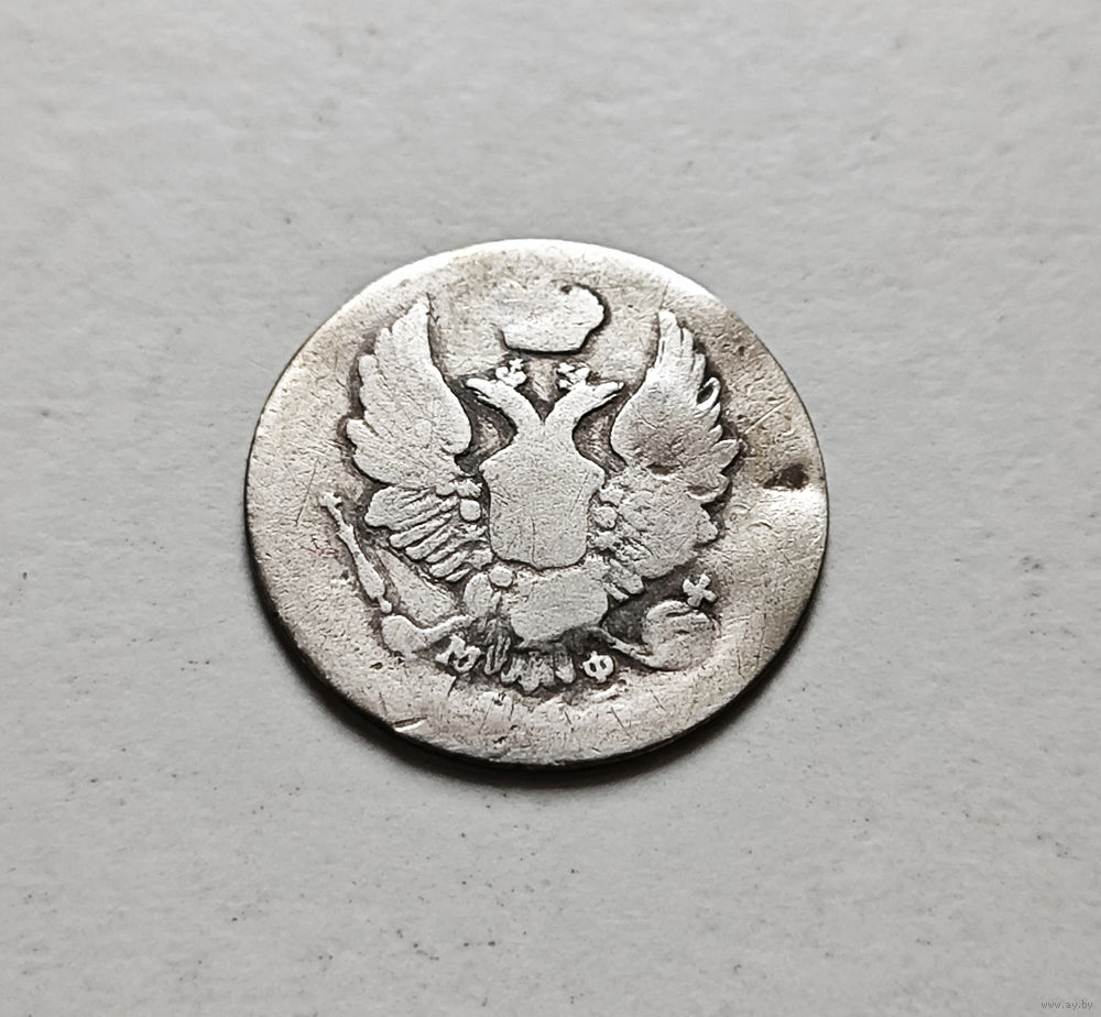 Перед нами монета 5 копеек, выпущенная в 1815 году Санкт-Петербургским монетным двором (СПБ), в 1815 году введена в обращение.