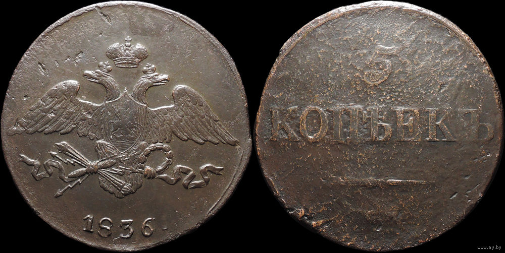 5 копеек 1836 СМ, Отличная! С 1 Рубля! Смотрите другие лоты!