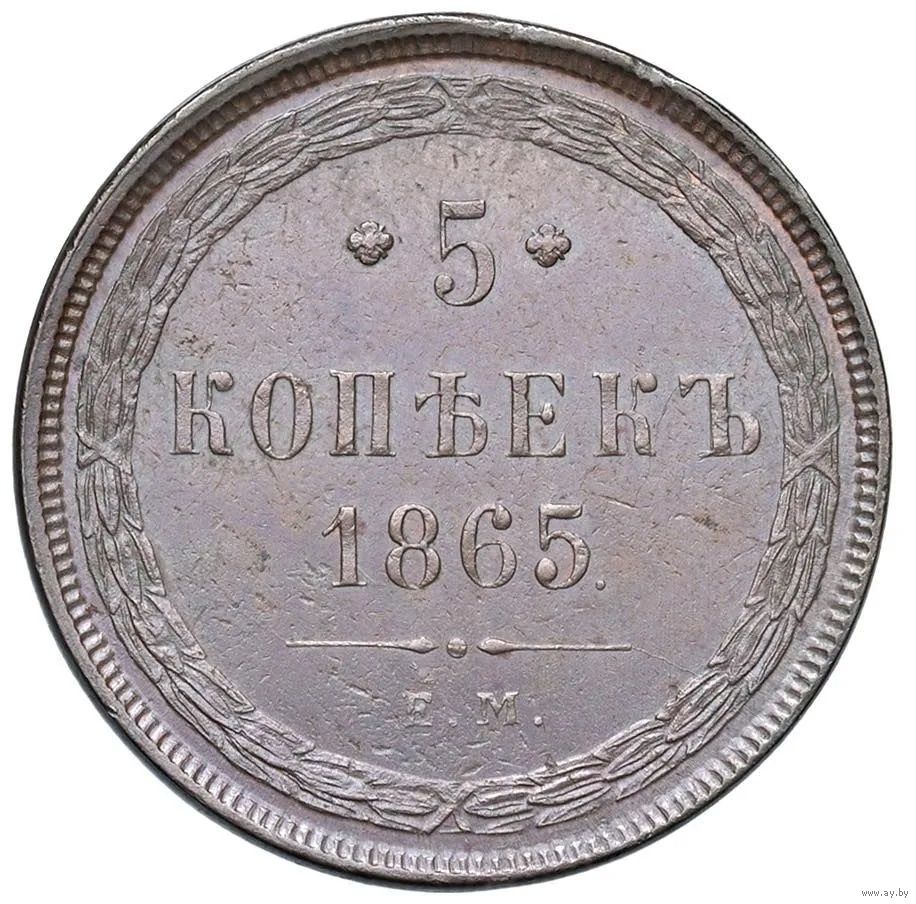 Отличная монета 5 копеек 1865 ЕМ в слабе CCG MS 60 No. AB521523. - MS 60