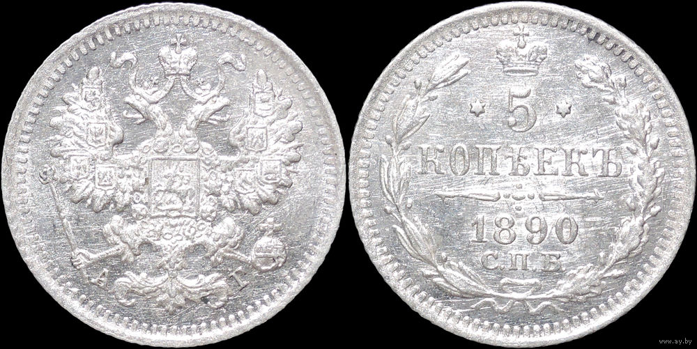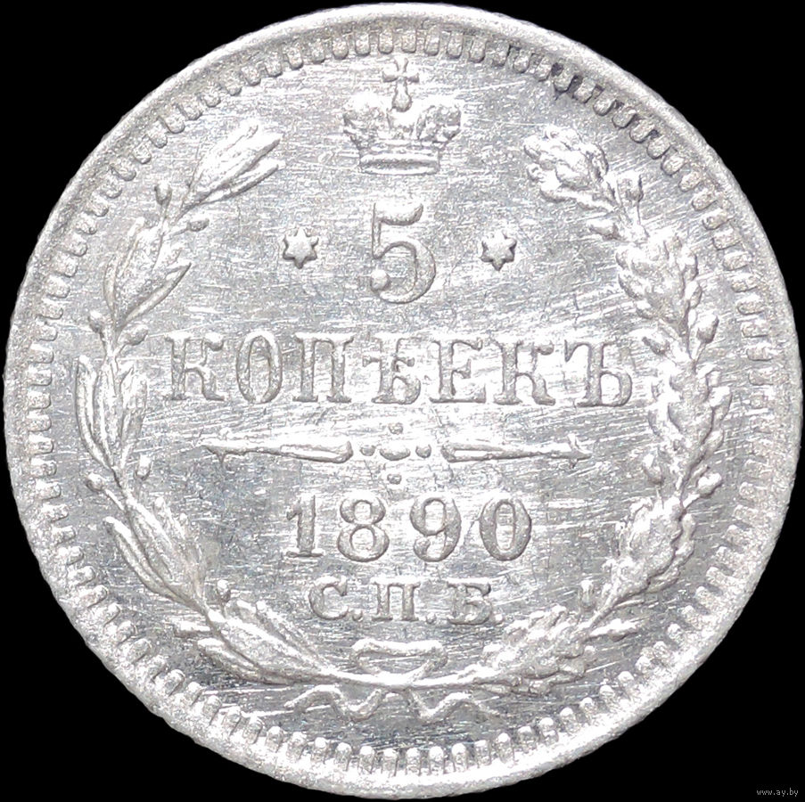 5 копеек 1890, UNC, Штемпельный блеск! С 1 Рубля! Смотрите другие лоты!