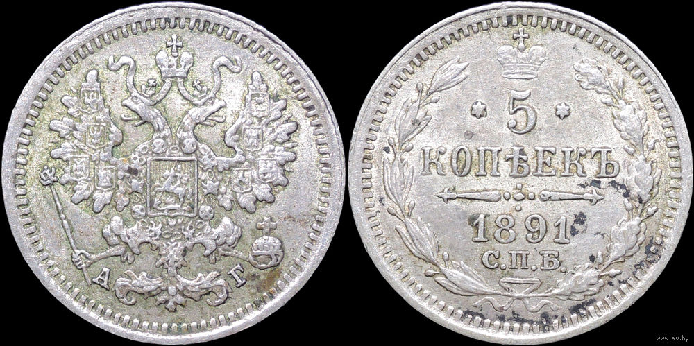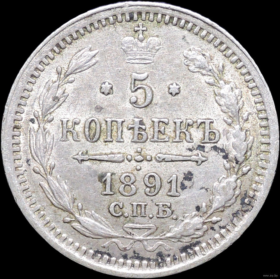 5 копеек 1891, aUNC, Штемпельный блеск! С 1 Рубля! Смотрите другие лоты!