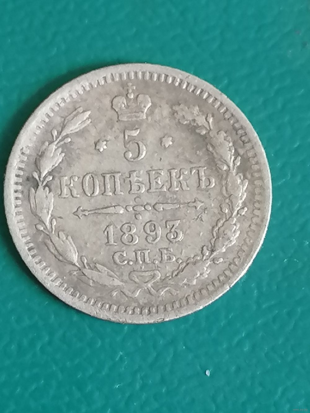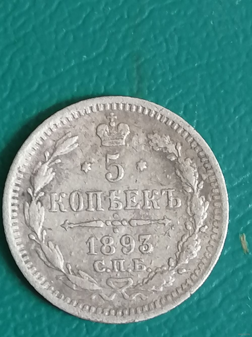 5 копеек 1893 год.СПБ АГ.Состояние на фото.