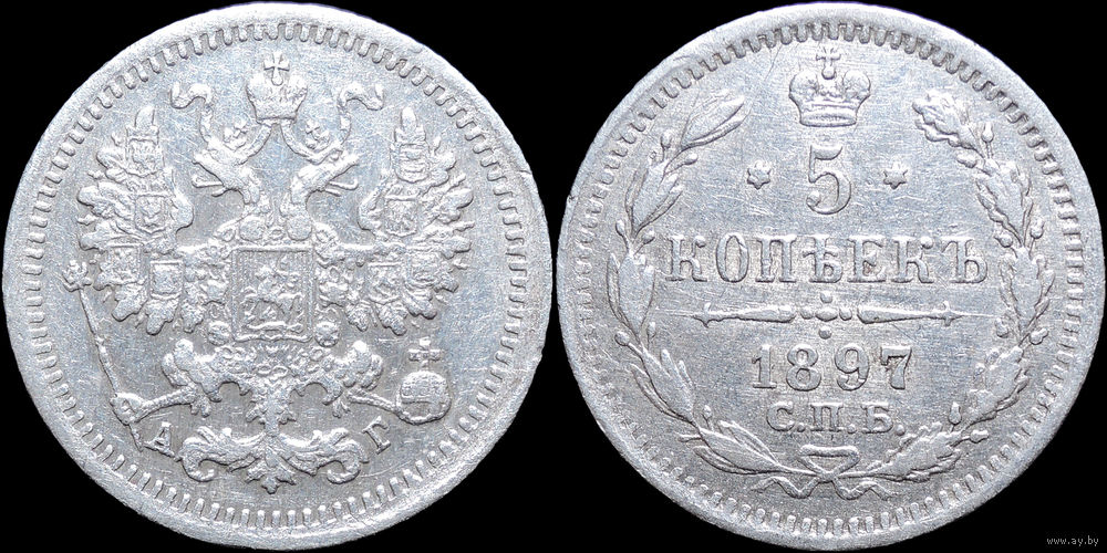 5 копеек 1897, Отличная! Нечастая! С 1 Рубля! Смотрите другие лоты!