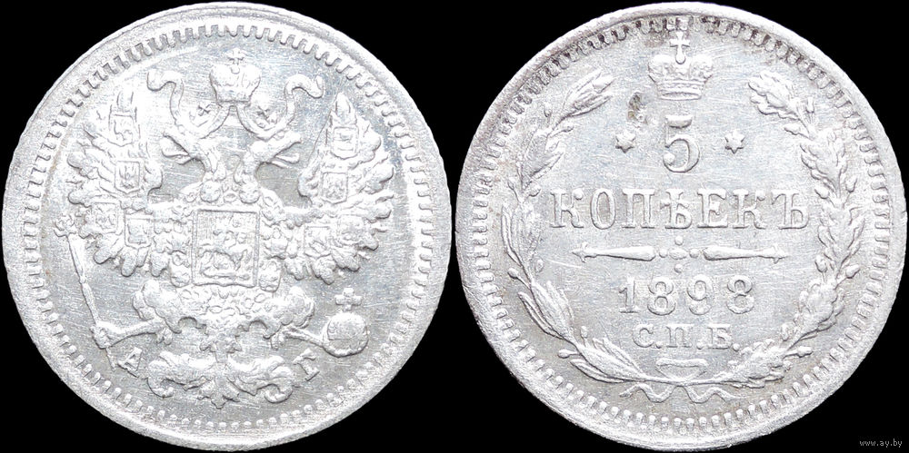 5 копеек 1898, aUNC, Отличная! Нечастая! С 1 Рубля! Смотрите другие лоты!