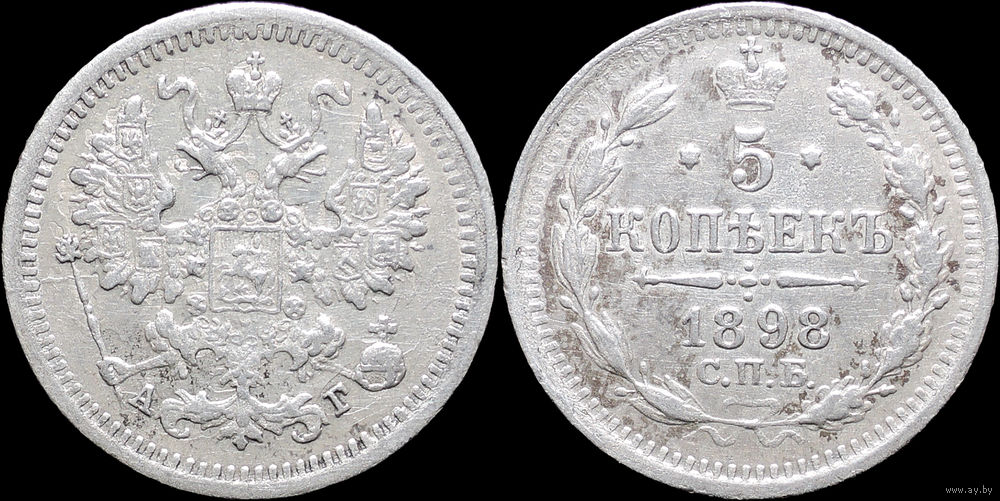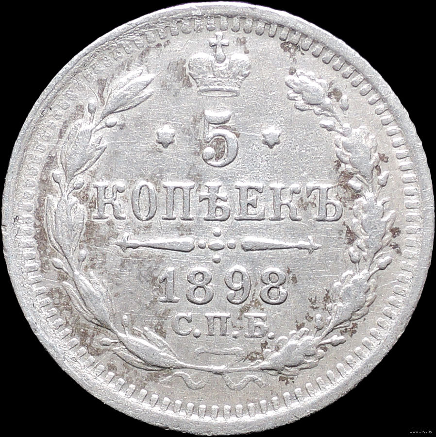 5 копеек 1898, Отличная! Нечастая! Соударение штемпелей! С 1 Рубля! Смотрите другие лоты!