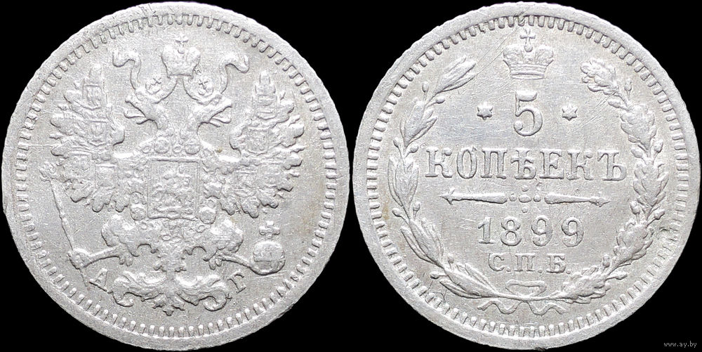 5 копеек 1899 АГ, Отличная! Нечастая! С 1 Рубля! Смотрите другие лоты!