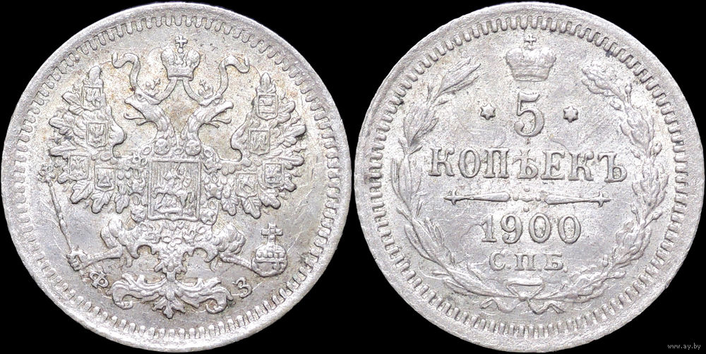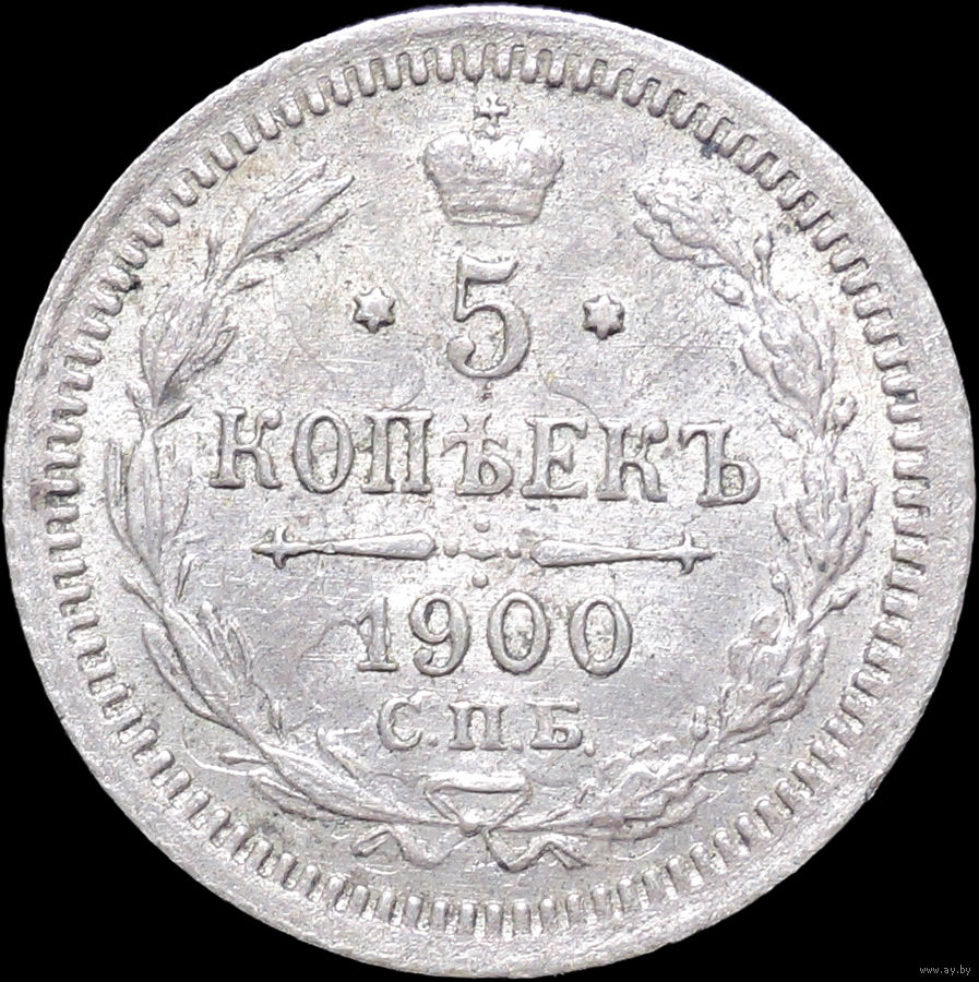 5 копеек 1900, UNC, Штемпельный блеск! С 1 Рубля! Смотрите другие лоты!