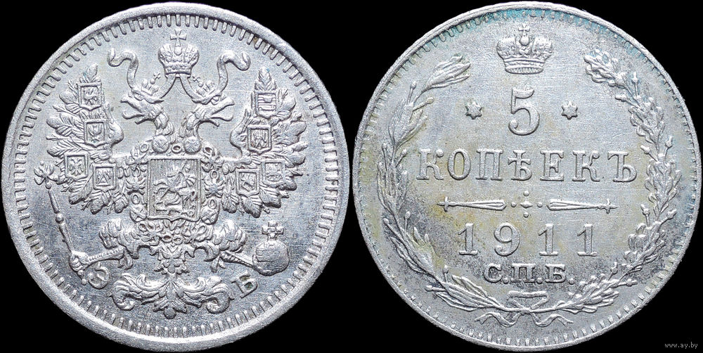 5 копеек 1911, aUNC, Отличная! С 1 Рубля! Смотрите другие лоты!