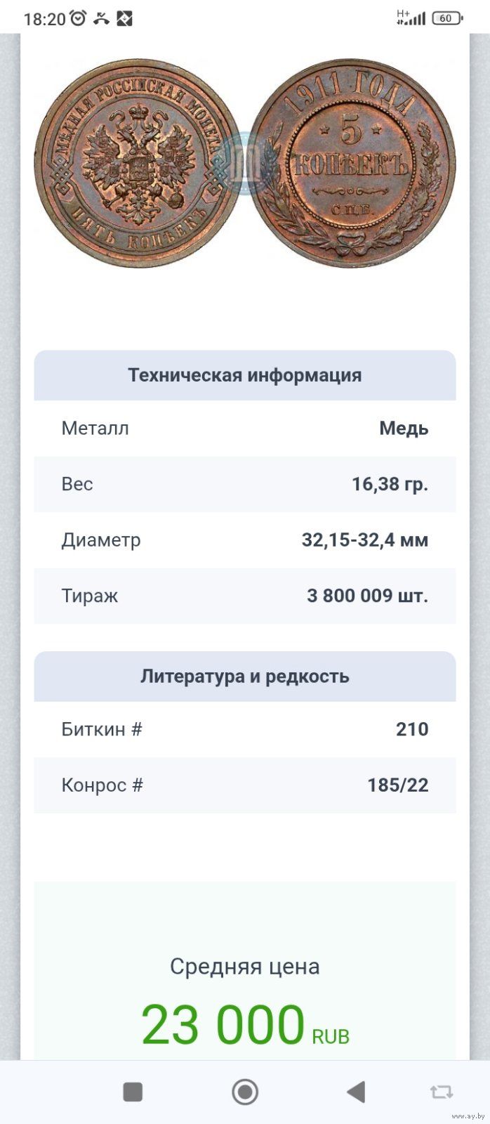 5 копеек 1911 СПБ! Состояние! ТОРГ!