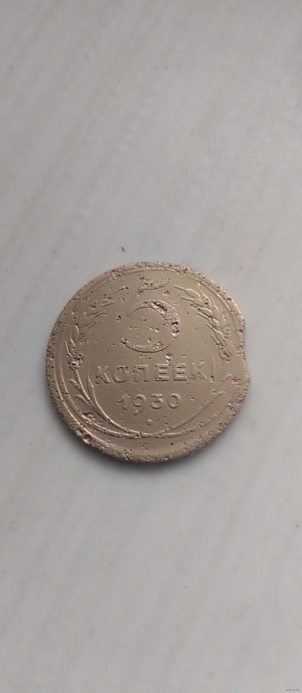 Монета 5 копеек 1930 года с заводским браком, выкус.
