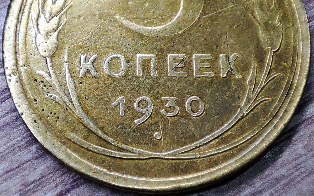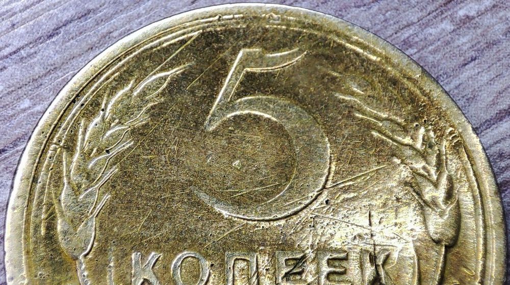 Монета номиналом 5 копеек 1930 СССР в количестве - 1шт. Начинающийся раскол штемпеля аверса