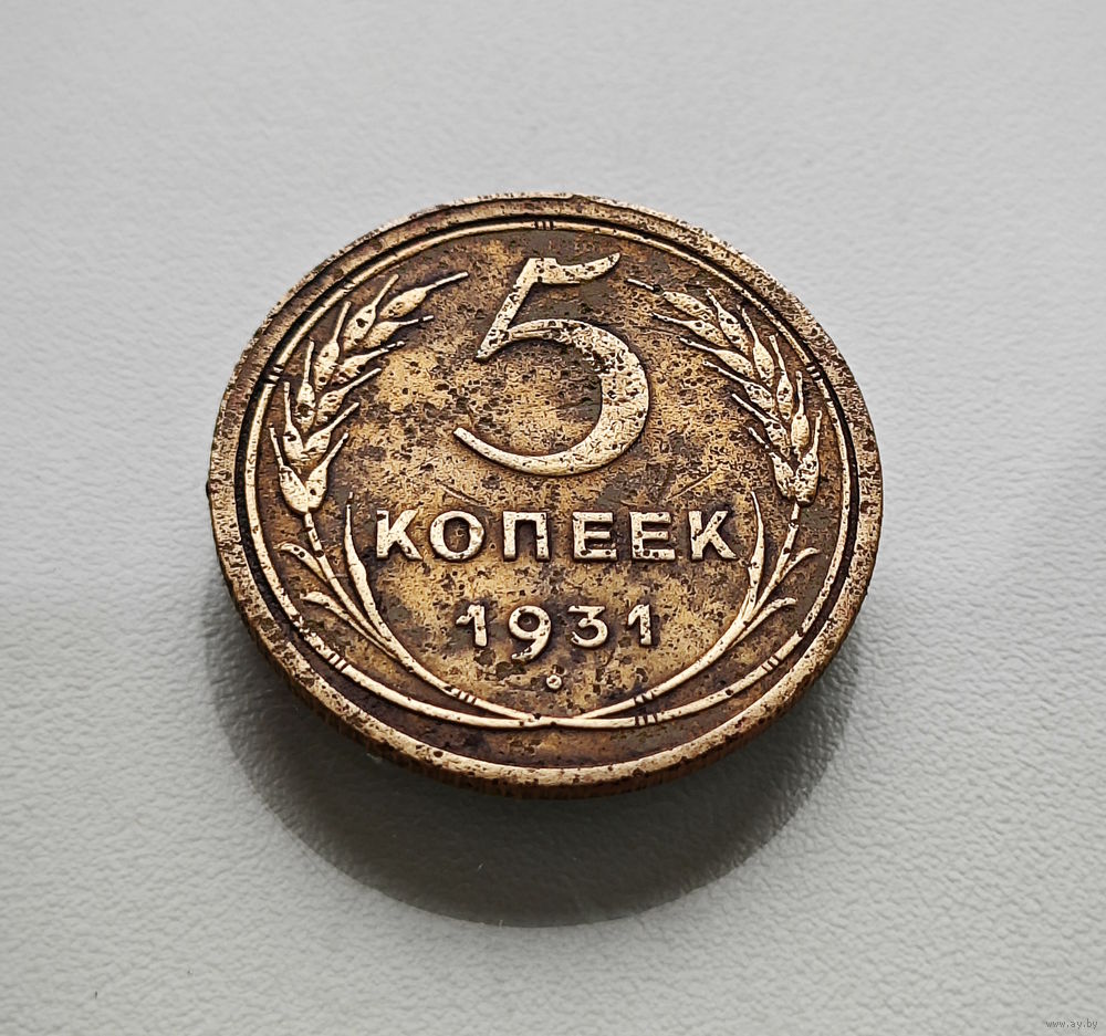 Перед нами монета 5 копеек, выпущенная в 1931 году, в 1931 году введена в обращение.