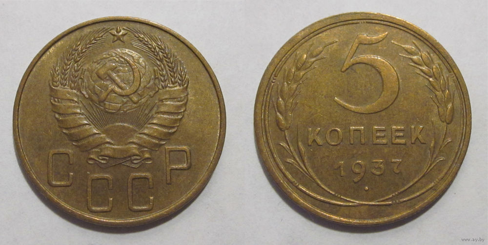 5 копеек 1937 aUNC