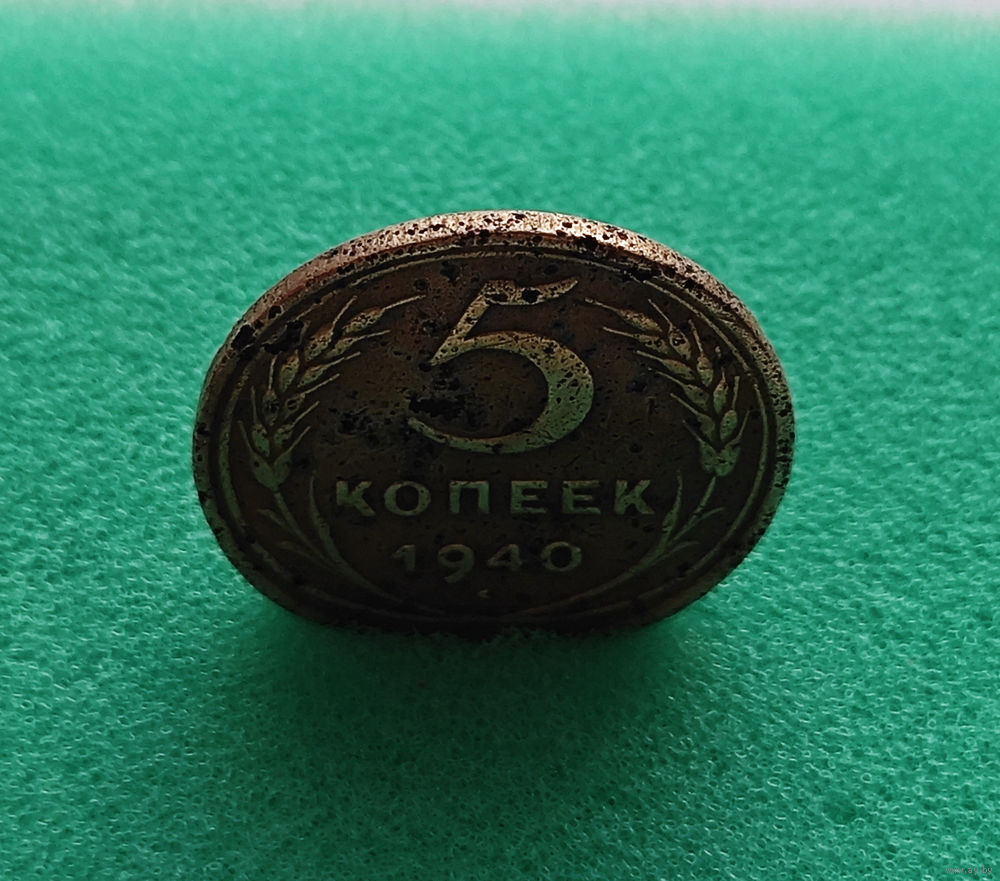 Перед нами монета 5 копеек, выпущенная в 1940 году, в 1940 году введена в обращение.
