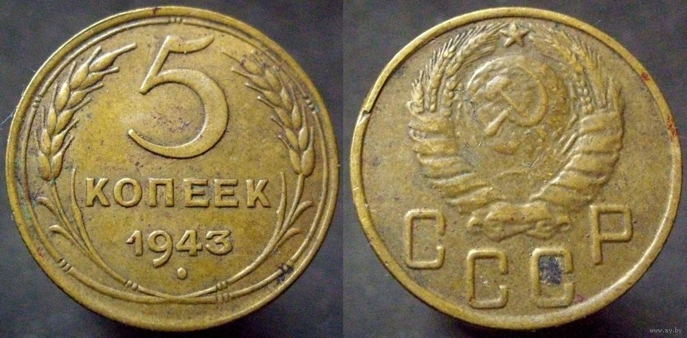 5 копеек 1943 шт.1.3А