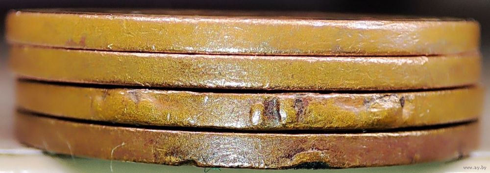 Монета номиналом 5 копеек 2009 РБ общим количеством - 4шт. Вздутия и наплывы плакировок аверсов и реверсов всех четырёх монет