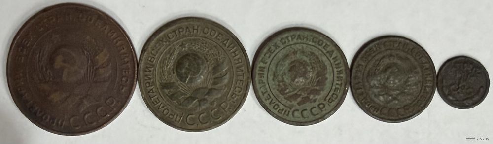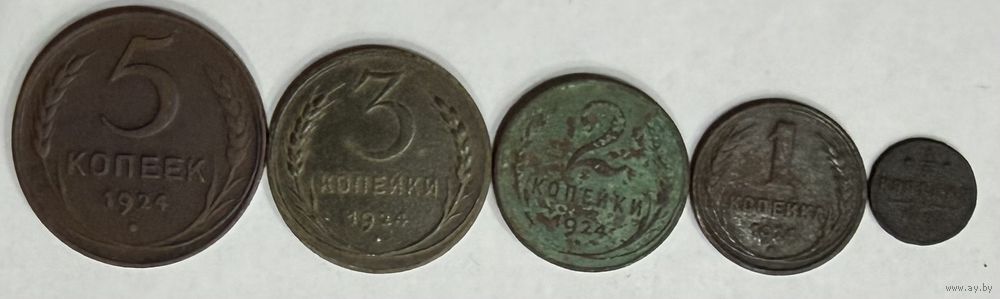 5 копеек, 3 копеек, 2 копейки, 1 копейка, 1/2 копейки - все 1924 года