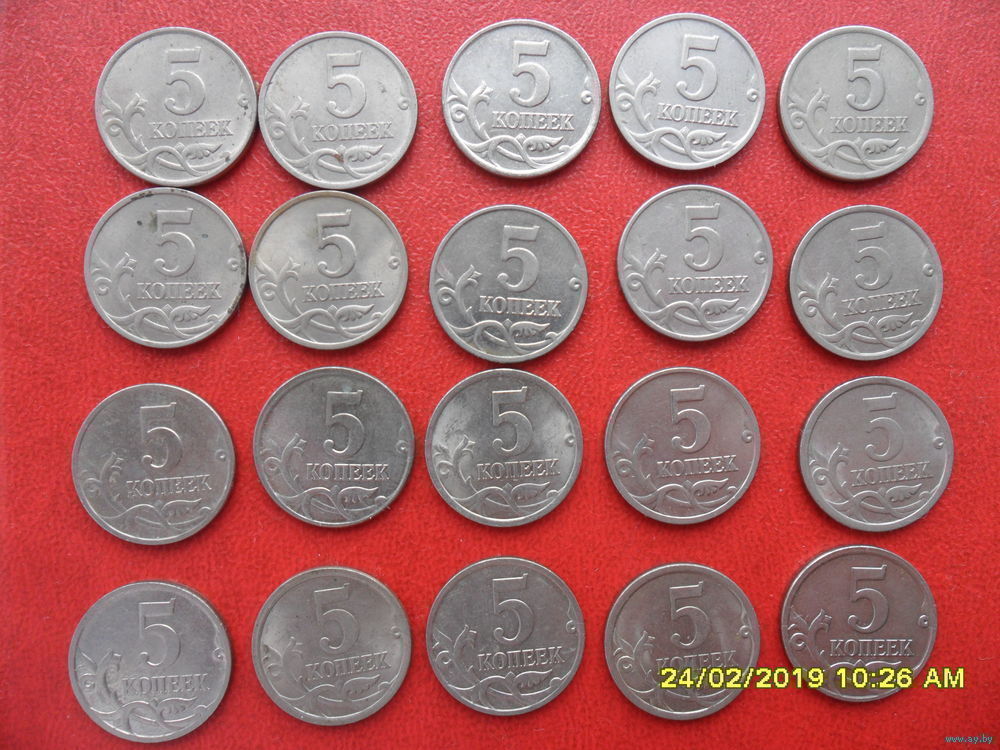 5 копеек России - набор из 20 монет, все разные (цена за все)