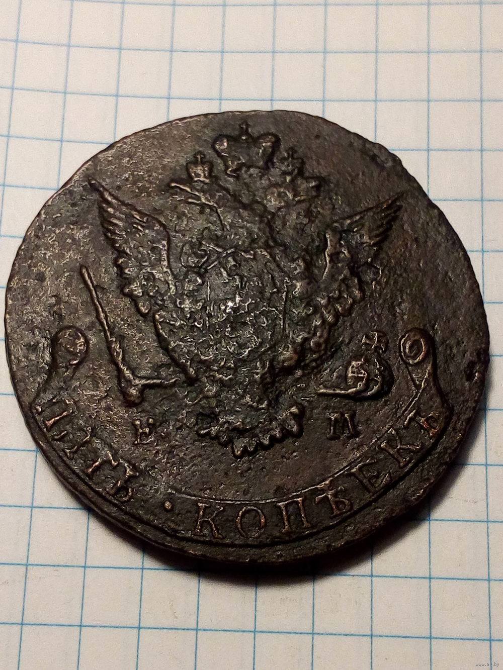 5 копеек Российская Империя 1777 год...копана, патина не родная...