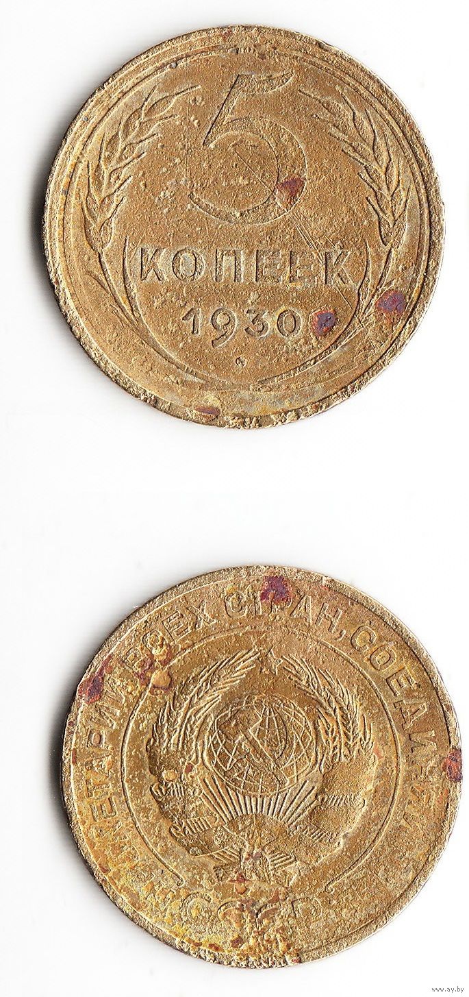 5 копеек СССР 1930 года, состояние отображено на скане.