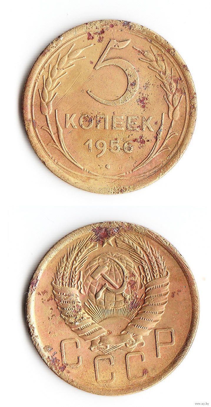 5 копеек СССР 1956 года, состояние отображено на скане.