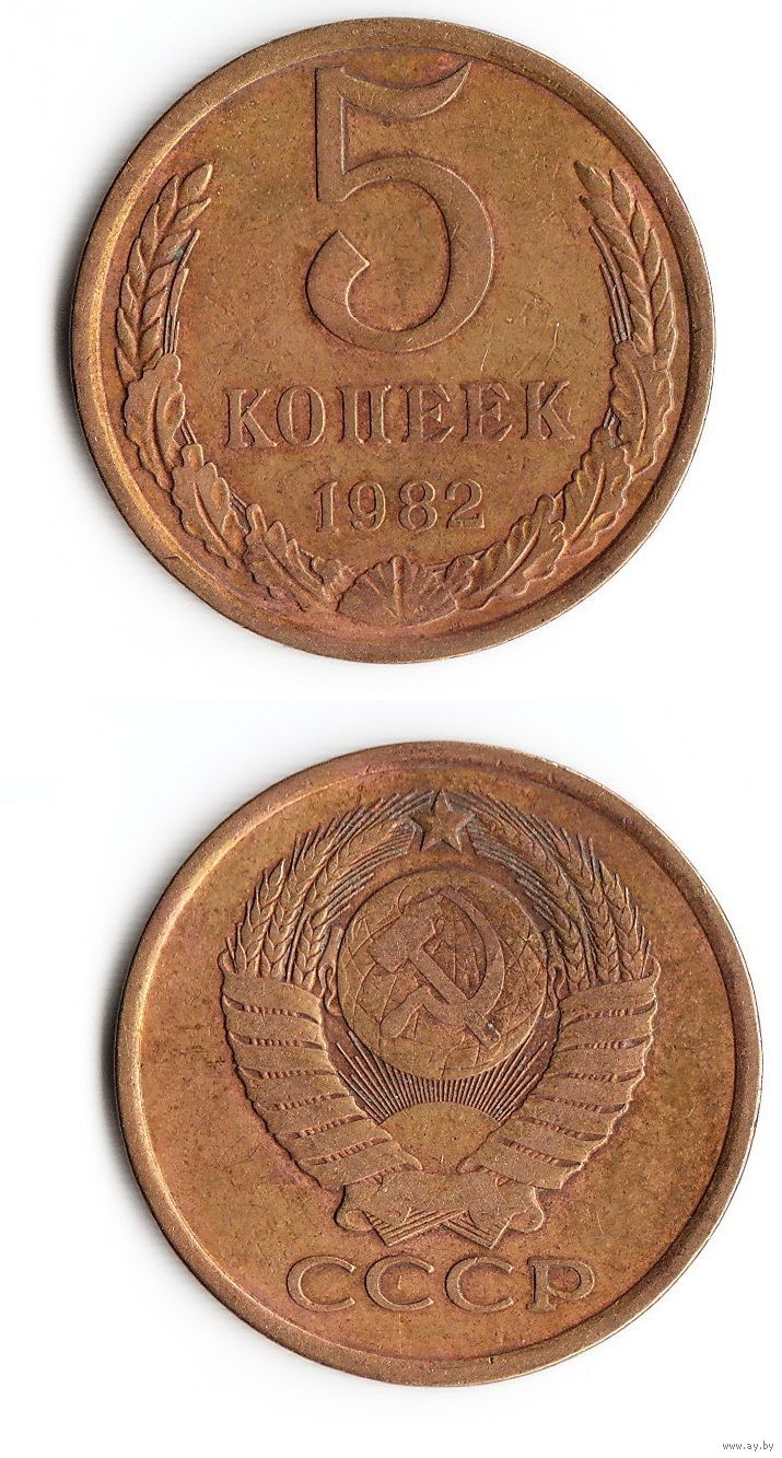 5 копеек СССР 1982 года, состояние отображено на скане.