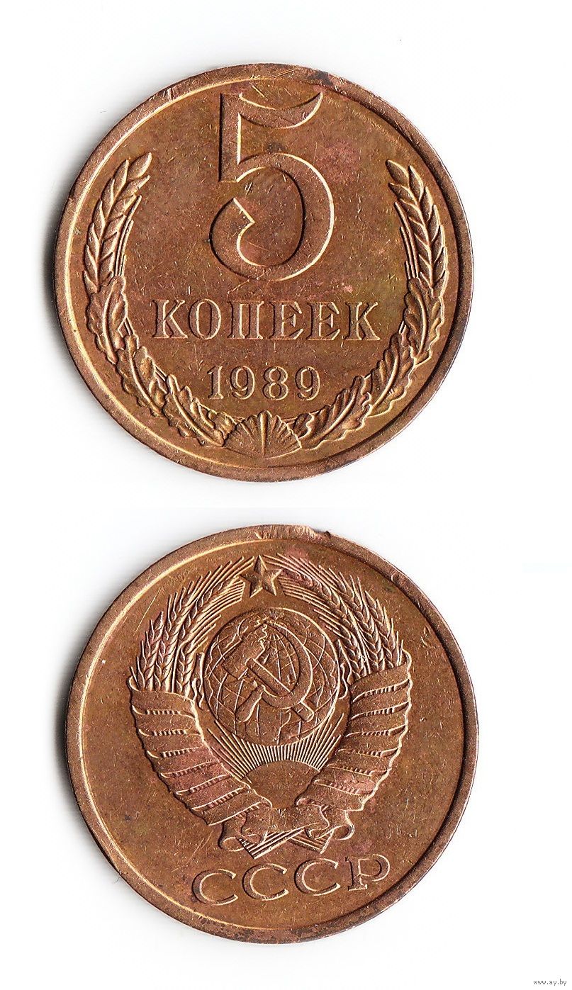 5 копеек СССР 1989 года, состояние отображено на скане.