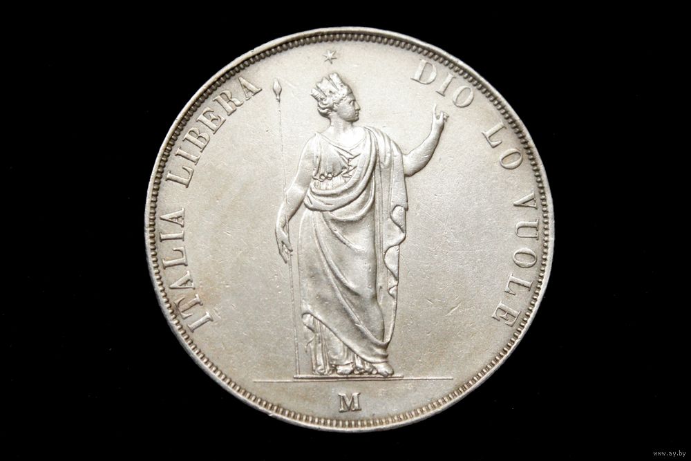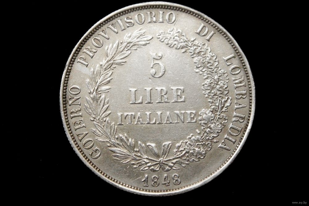 5 лир 1848 г. Временное правительство Ломбардии (Италия). Пореже!