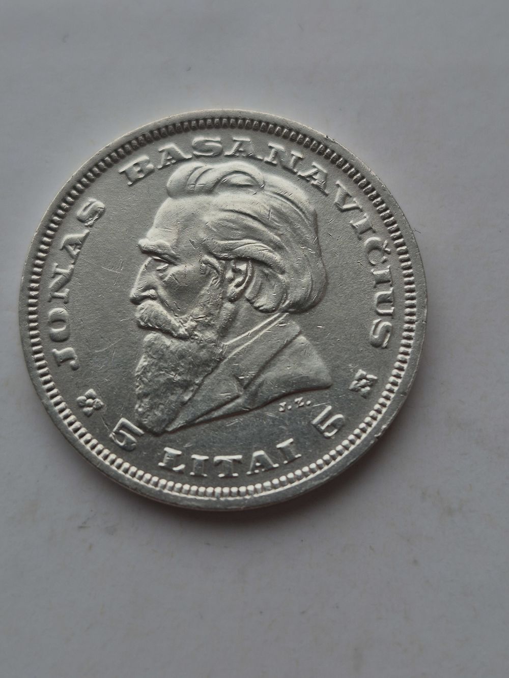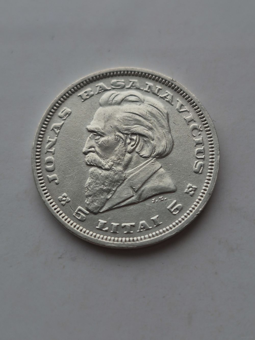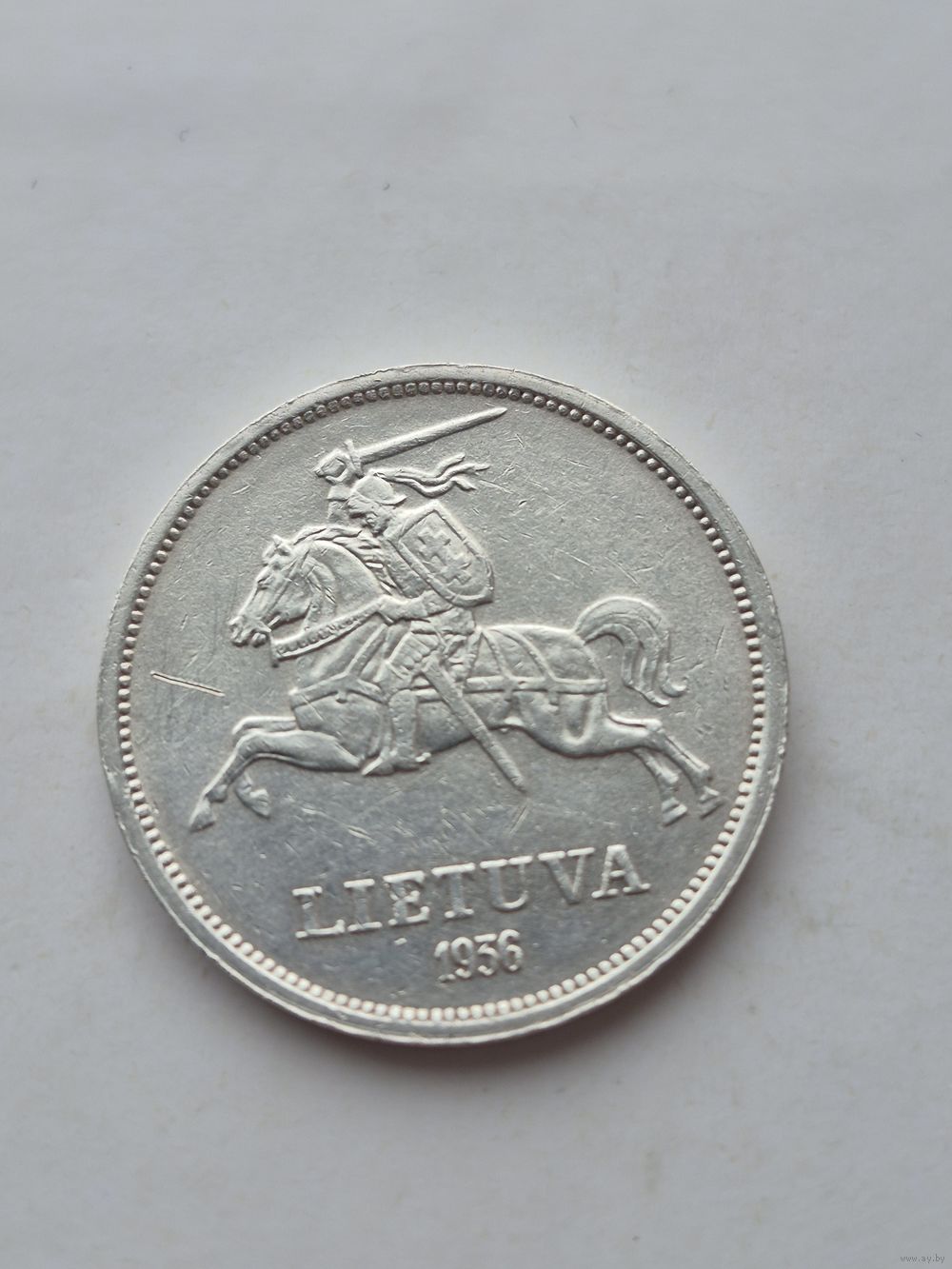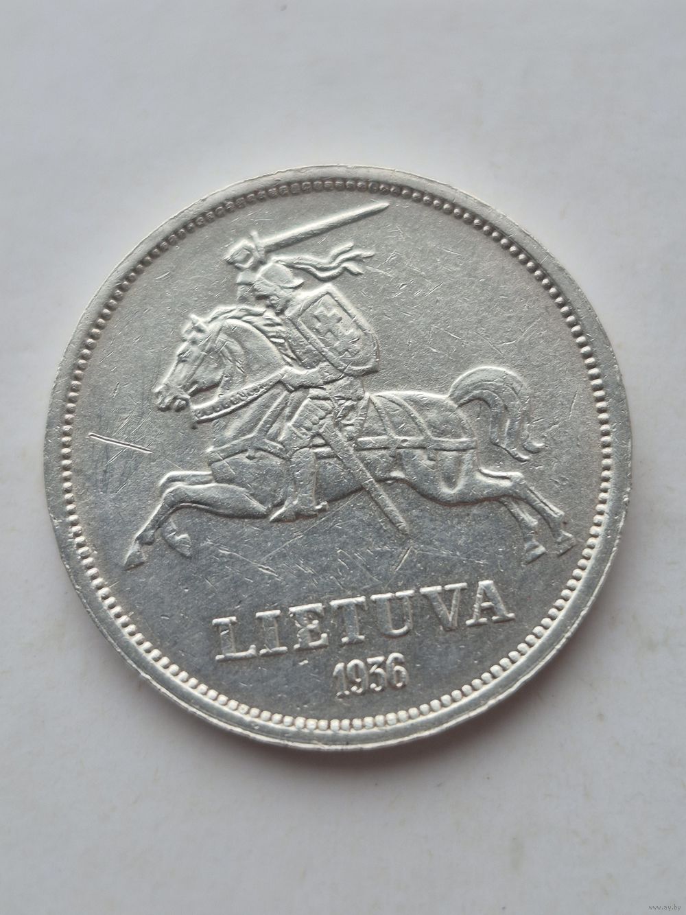 5 лит 1936 года. Литва, Первая Республика (1925 - 1938). Серебро 750. Монета не чищена. В2 45630.