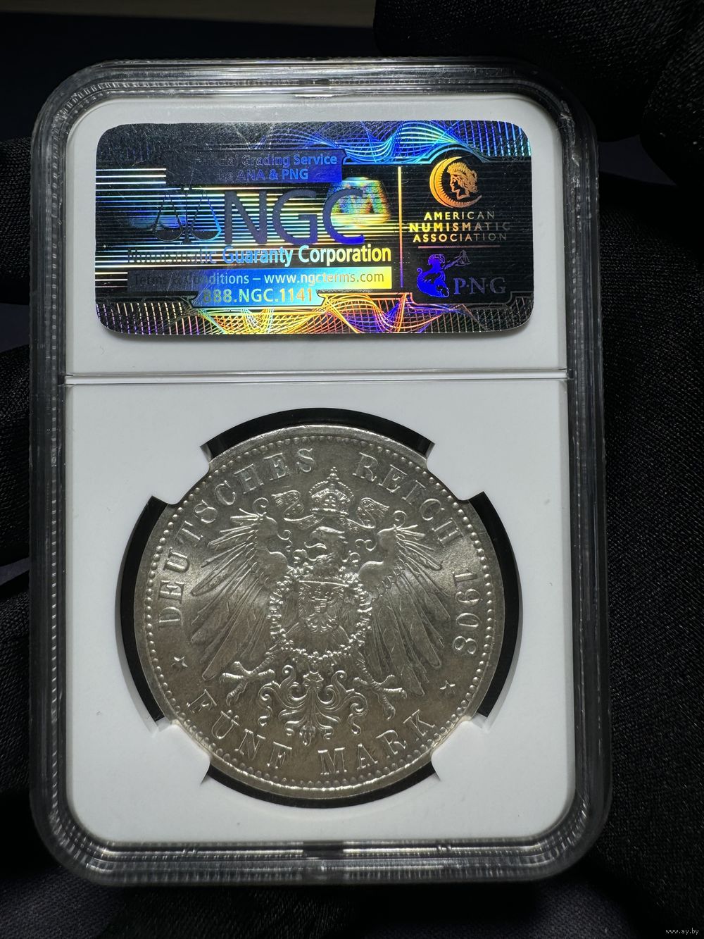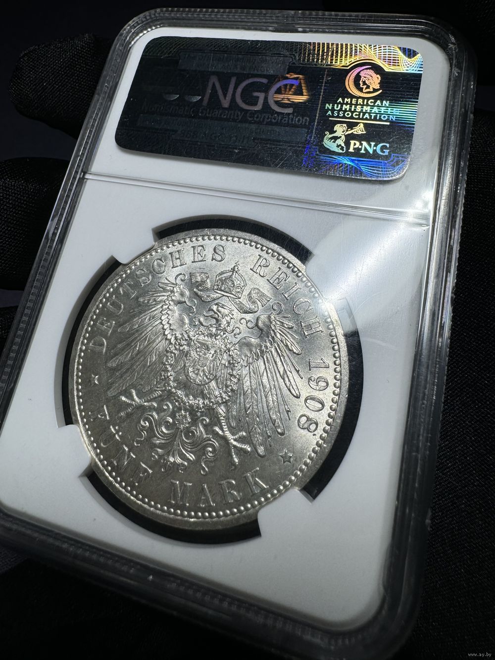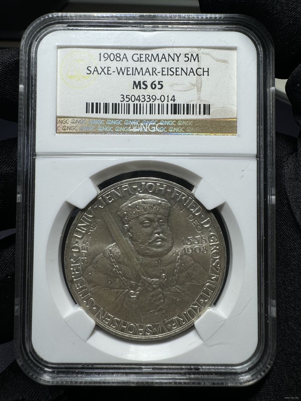 Германия, 5 марок 1908A Саксен-Веймар-Эйзенах в слабе NGC MS65