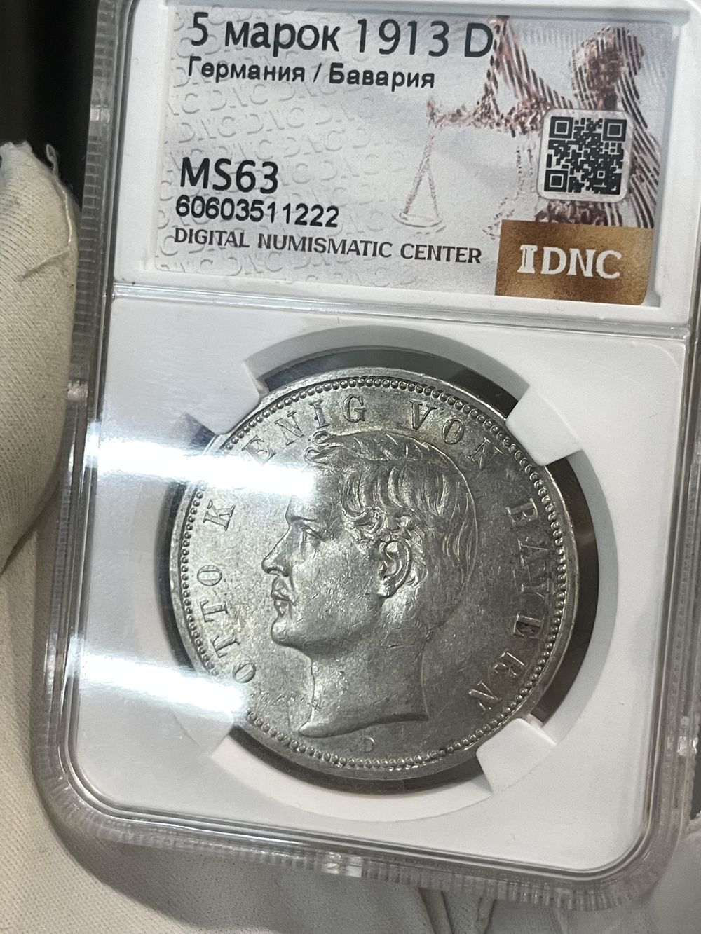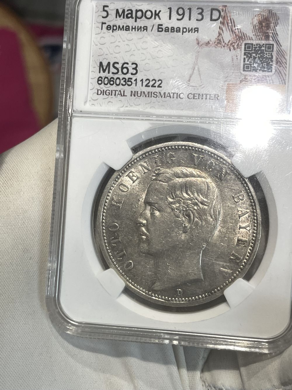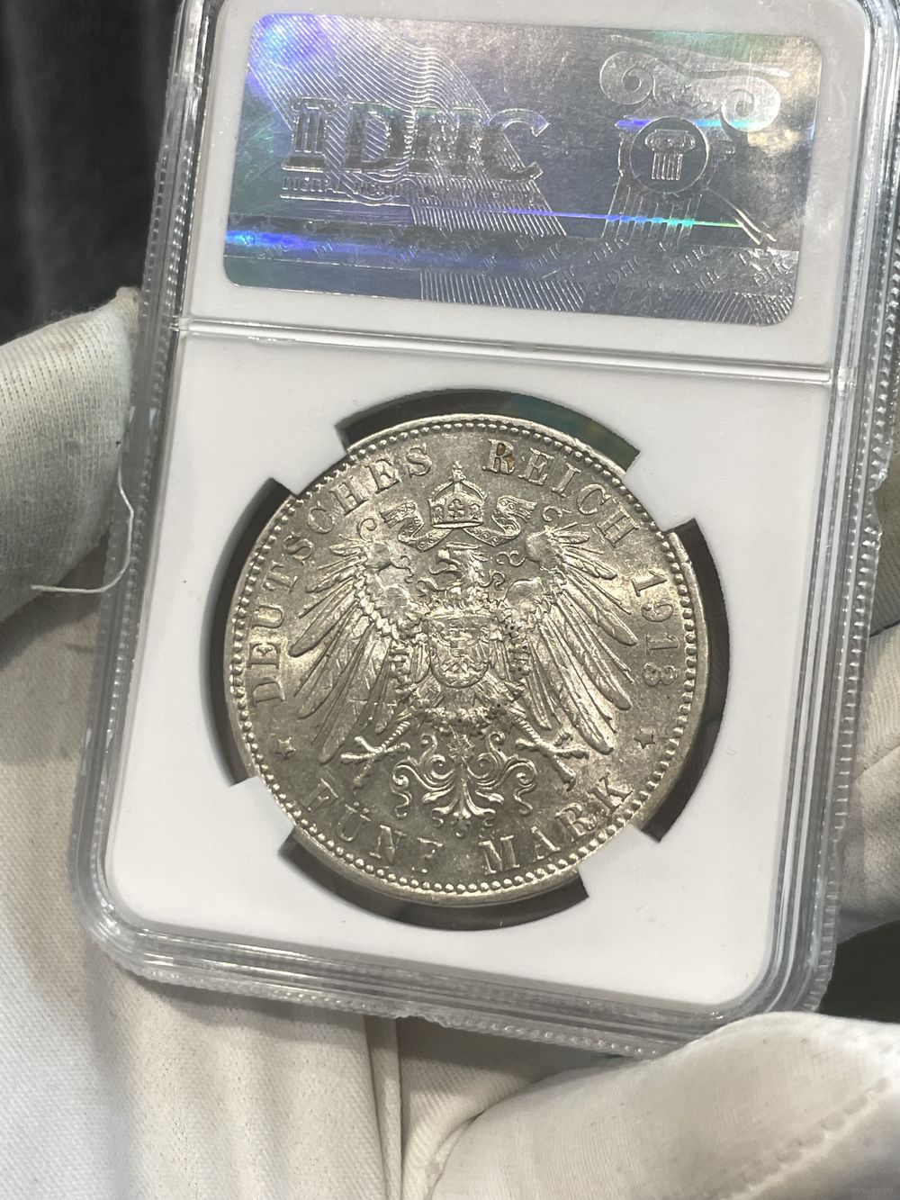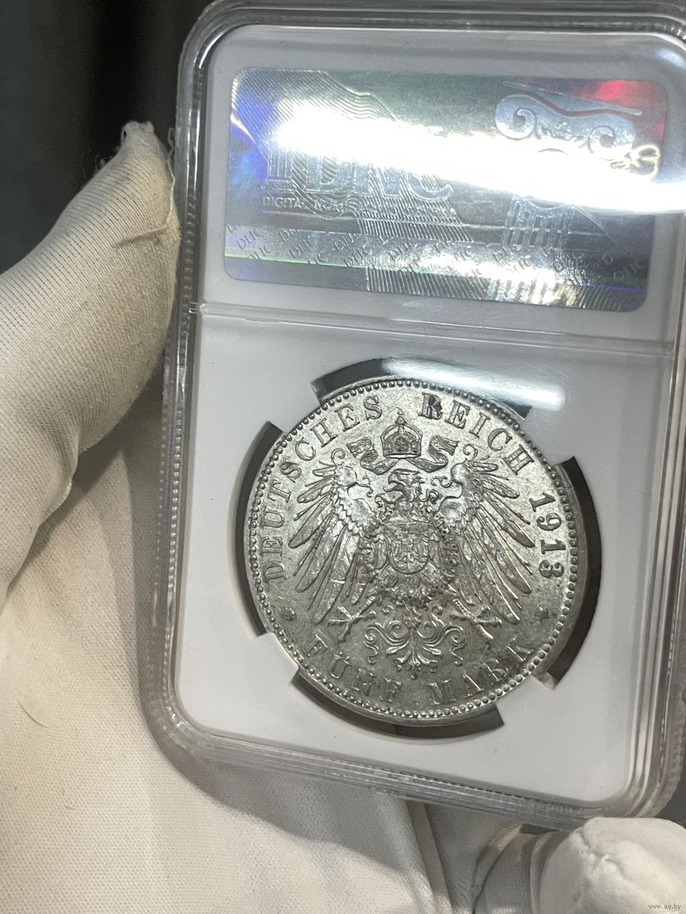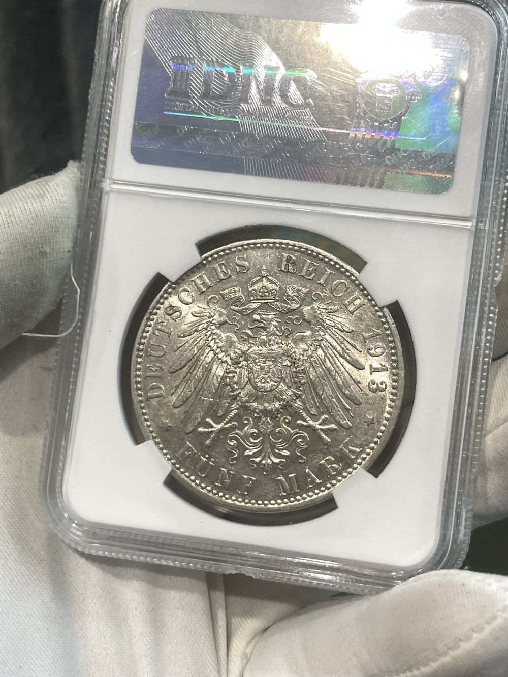 5 марок 1913 нечастая монета в ms 63 , яркая !