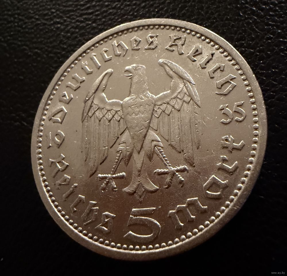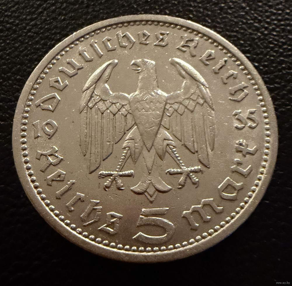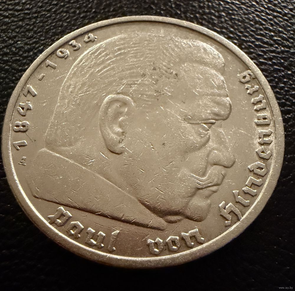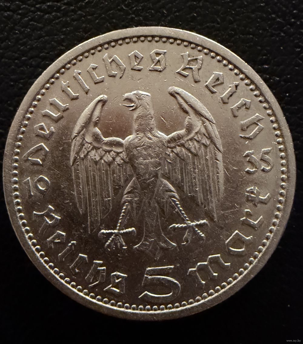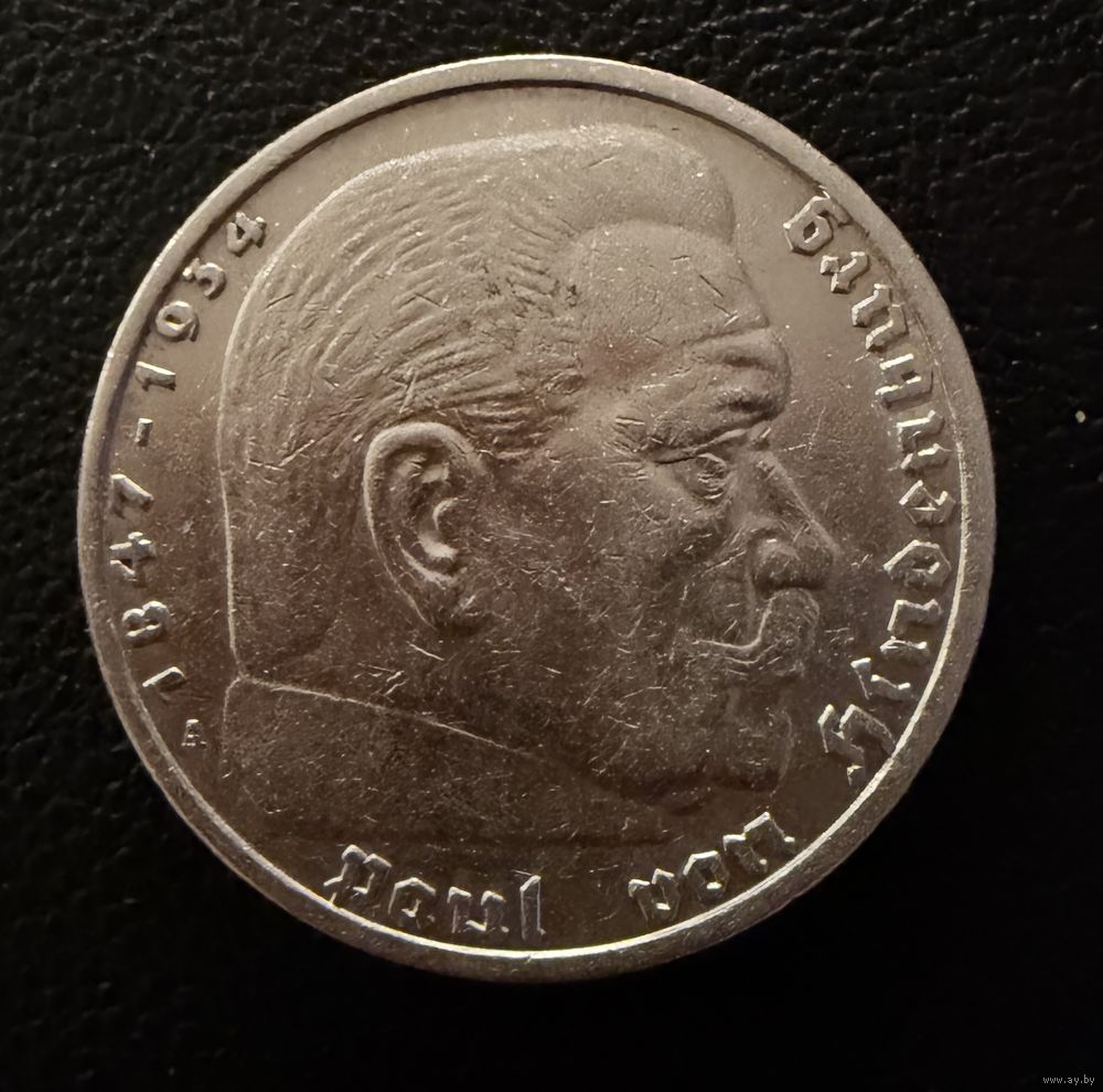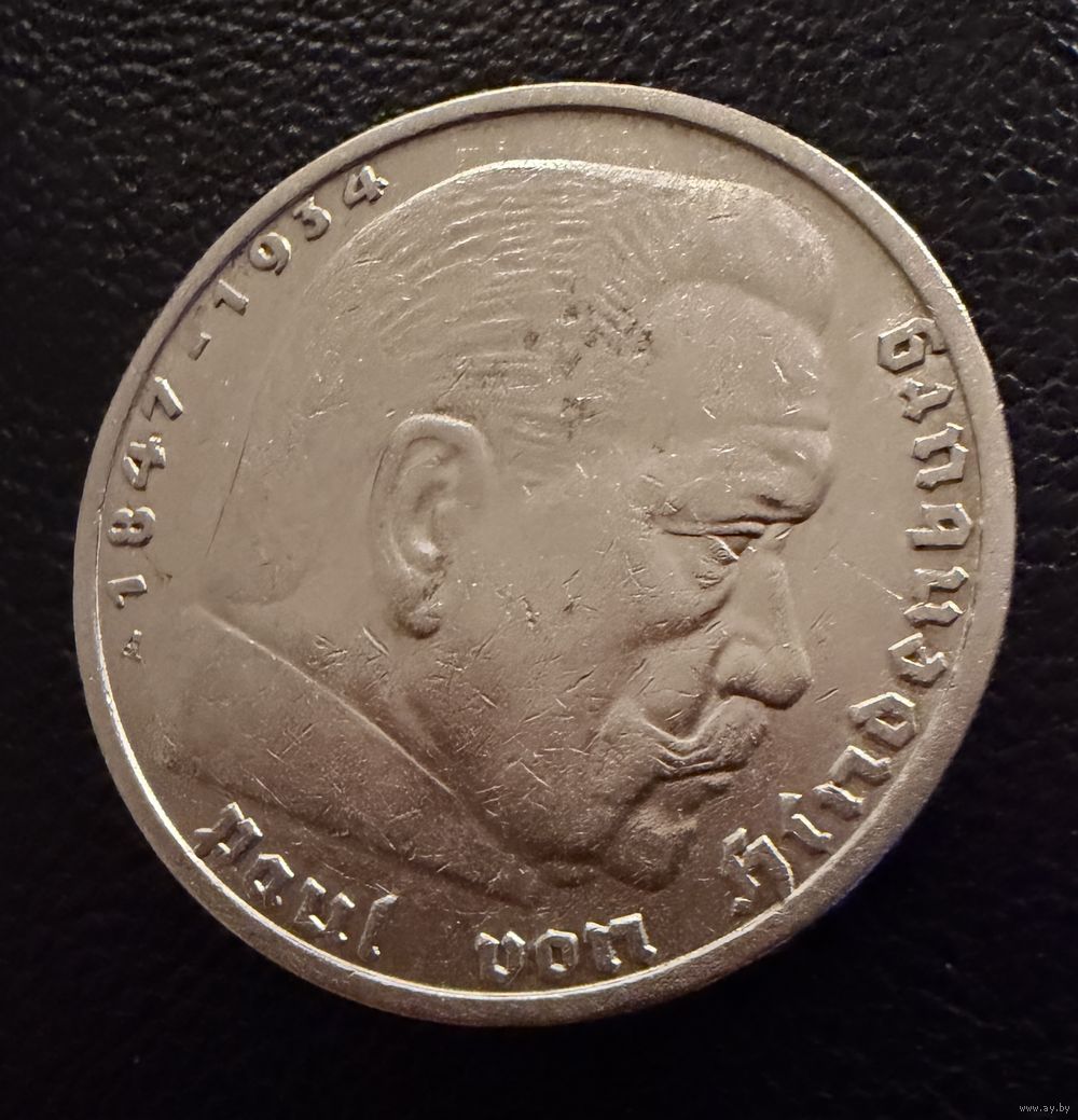 5 марок 1935 г. Германия Гинденбург. СЕРЕБРО. ЛЮКС