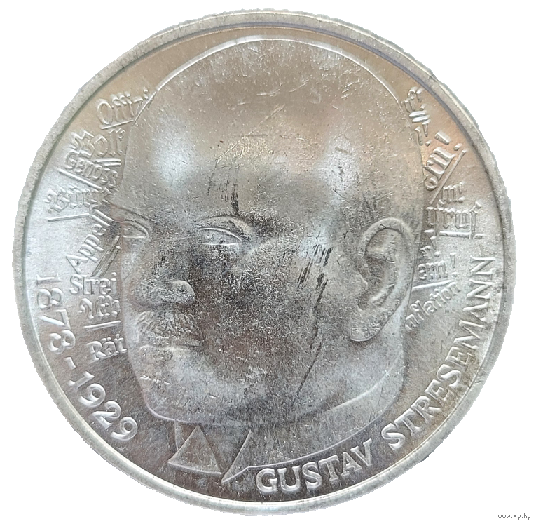 5 марок 1978 D Густав Штреземан! Штемпель! Серебро 11.2 грамма 625 пробы! ВОЗМОЖЕН ОБМЕН!