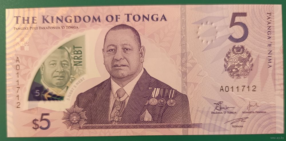 5 паанга 2023 года - полимер - Тонга - UNC
