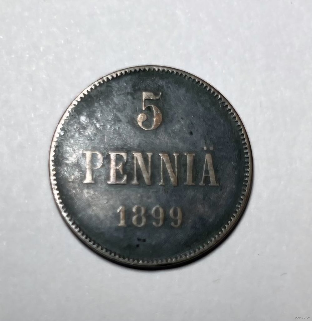 Красивая монета 5 пенни 1899 года в родной патине.