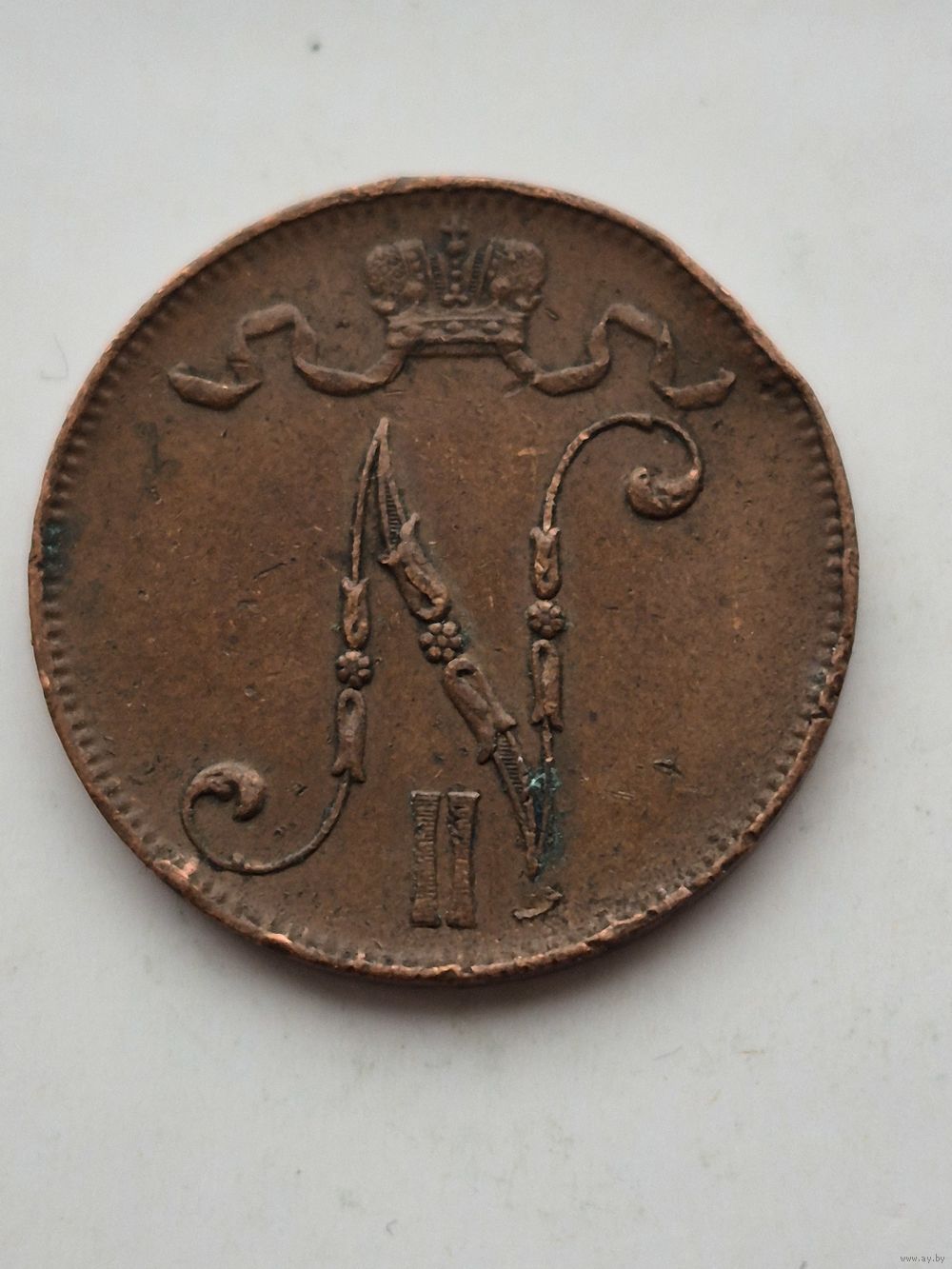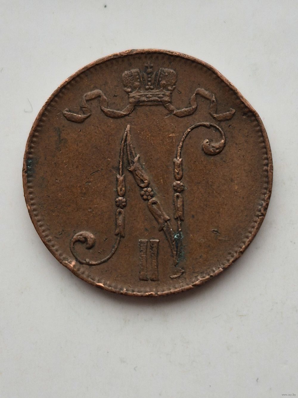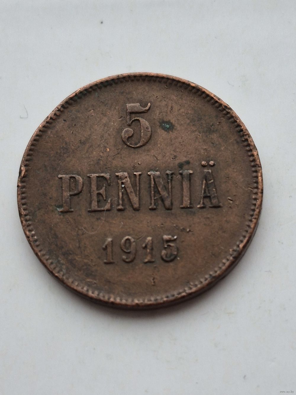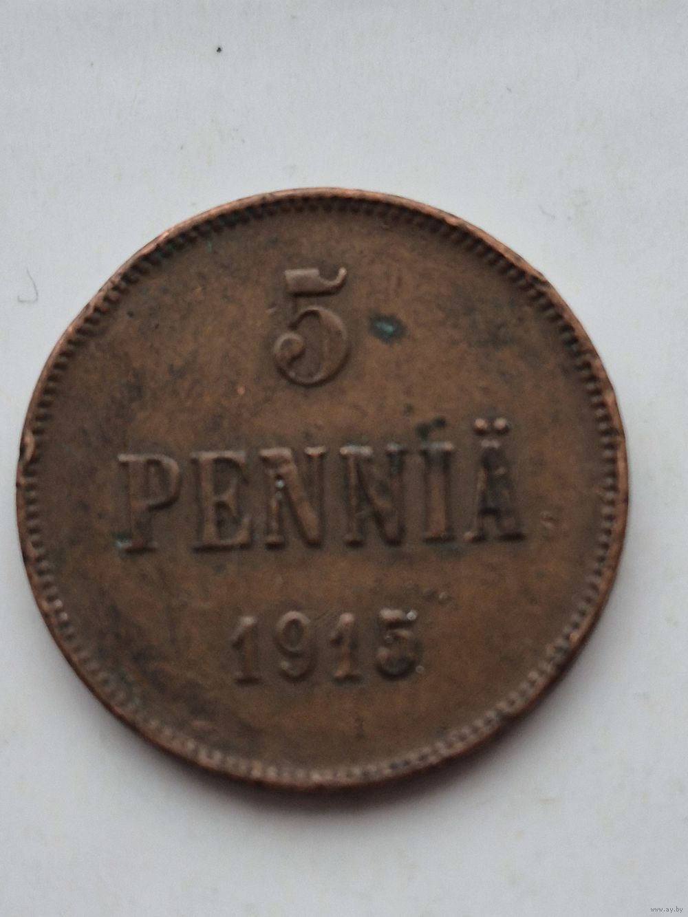 5 пенни 1915 года для Финляндии (Николай II). Монета не чищена. 45395