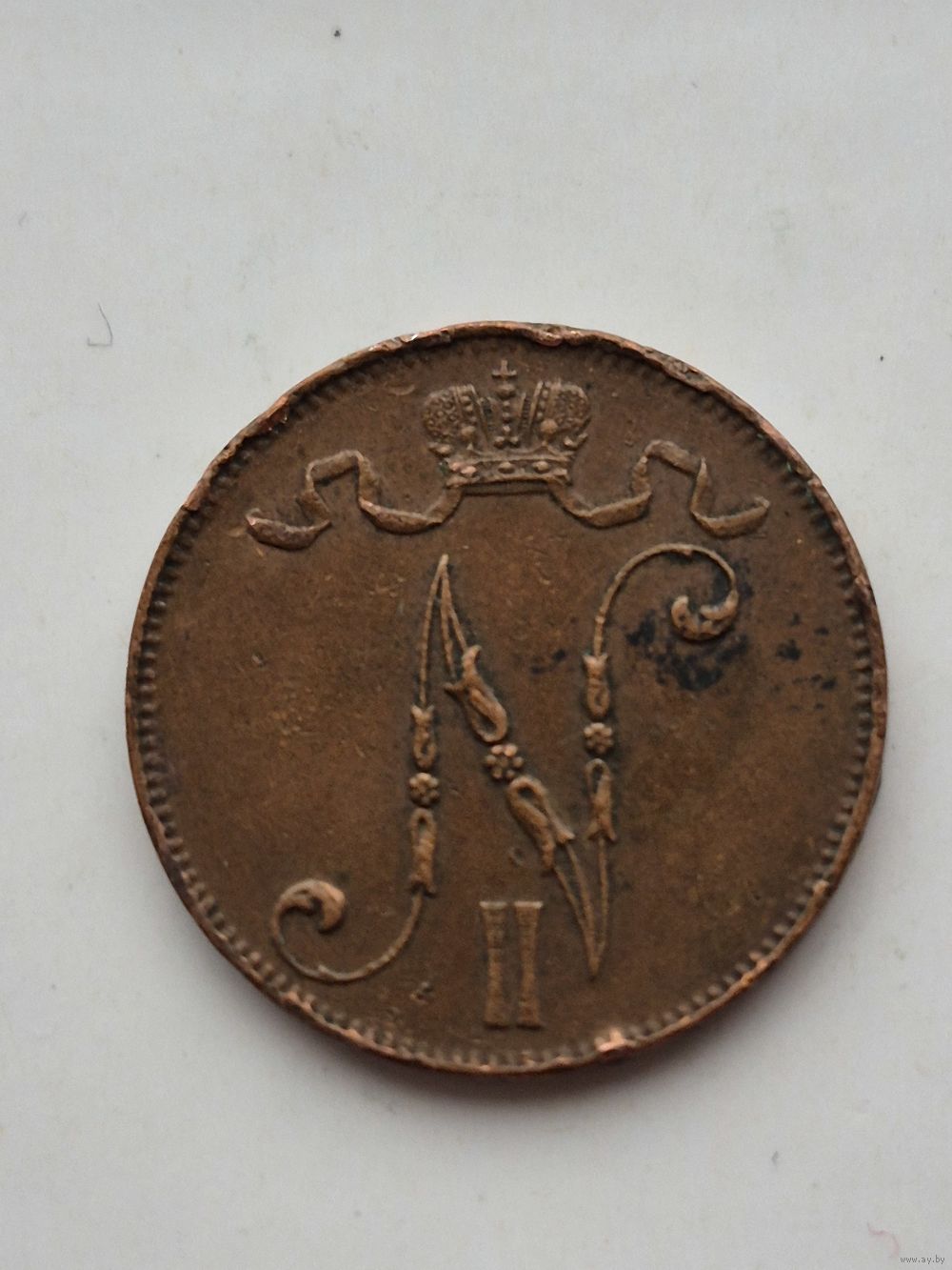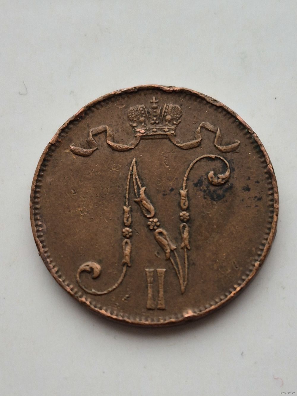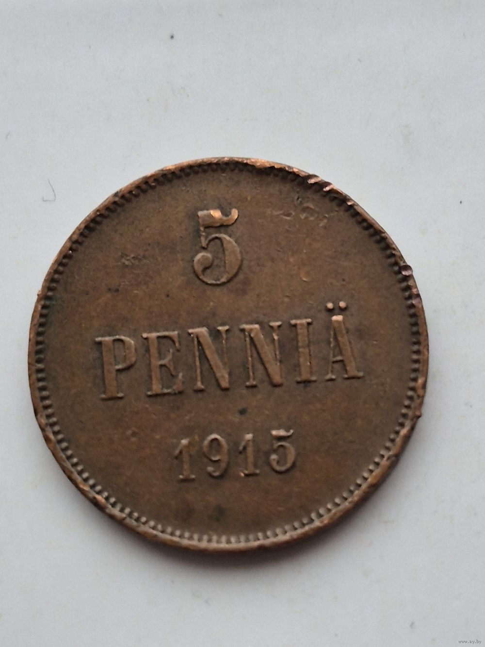 5 пенни 1915 года для Финляндии (Николай II). Монета не чищена. 45396