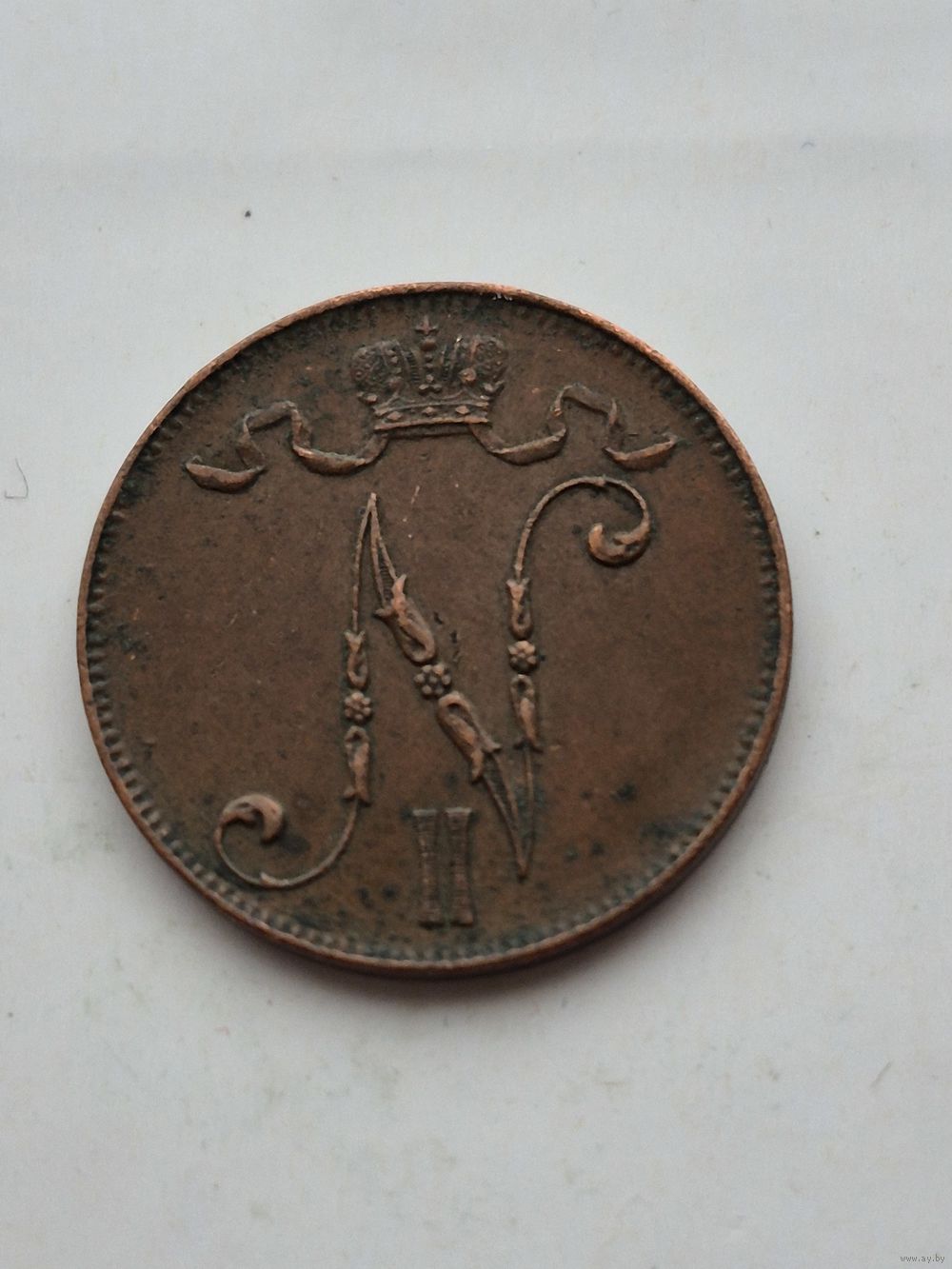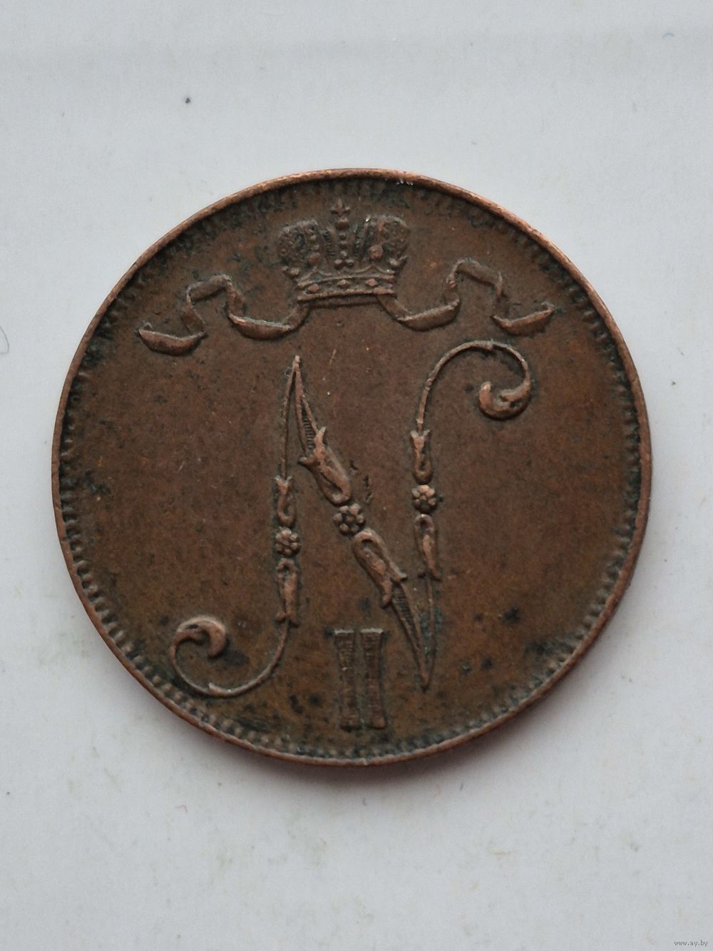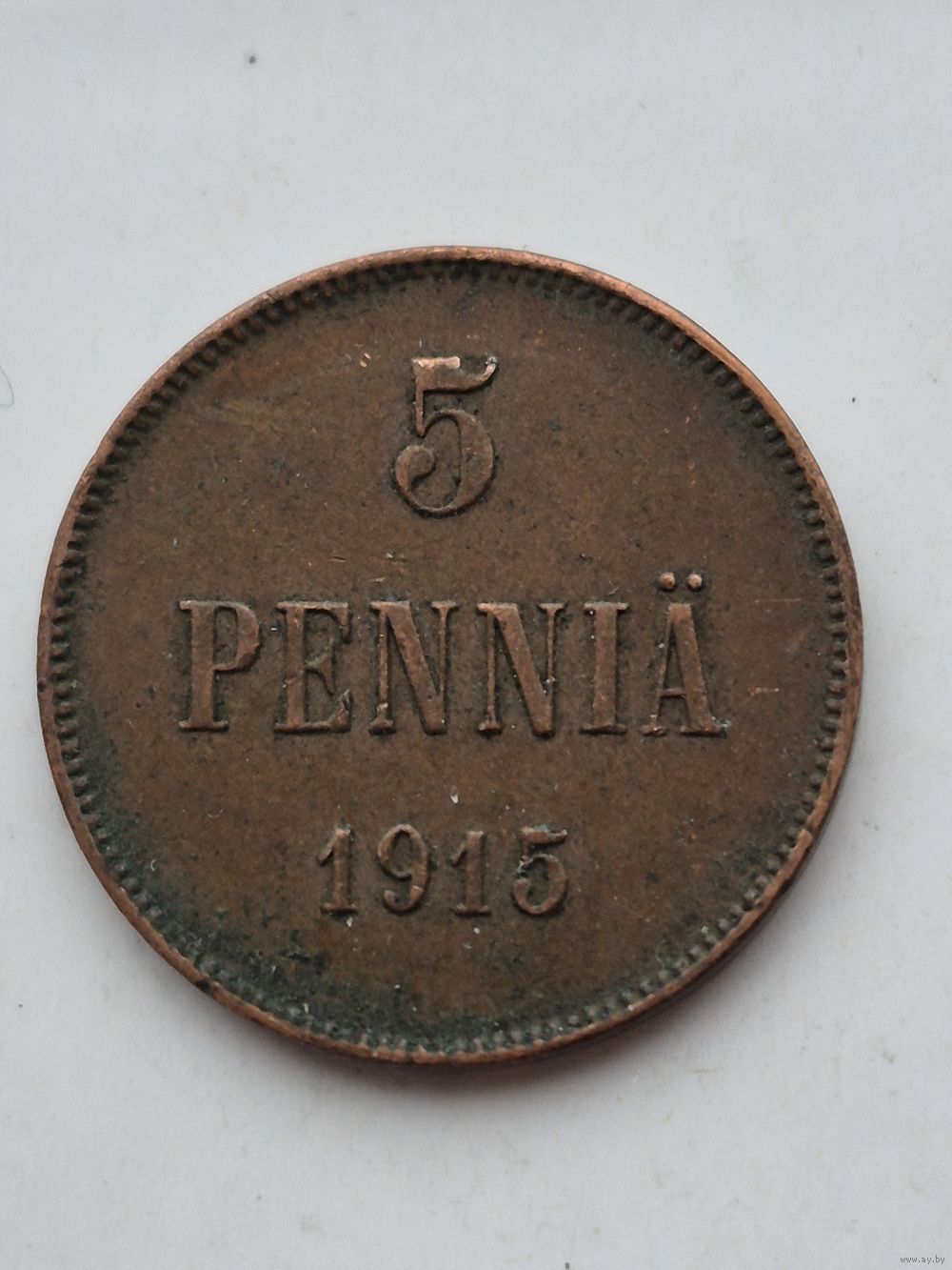 5 пенни 1915 года для Финляндии (Николай II). Монета не чищена. 45397